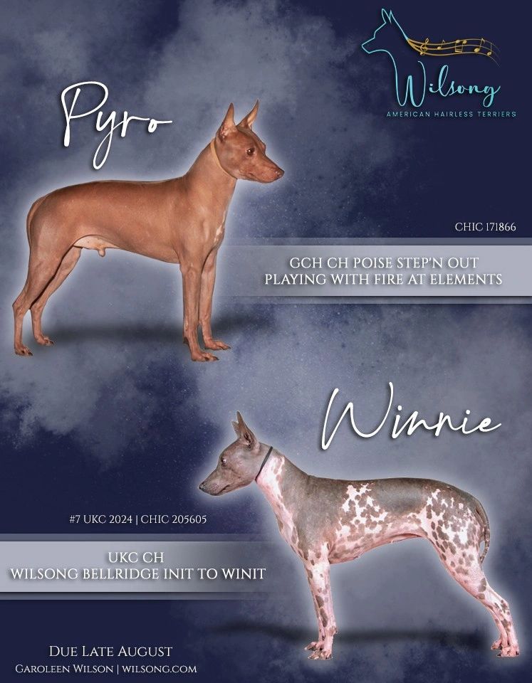 CH Winnie gave birth to five healthy boys August, 28 2025! They are hairless, 4 solide and one spotted puppy.